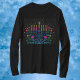 This is a review for a licensed-by-Disney long-sleeved deep-red tee shirt with design showing Mickey Mouse, Minnie Mouse, Donald Duck, Daisy Duck, Goofy, and Pluto. I customized the shirt by adding text with the names of each character.