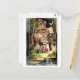 this vintage artwork is by Hermann Vogel 1854-1921 circa 1892 Hansel and Gretel here we see a scene of them beginning to eat the witches ginger bread house as she looks on from an upper floor window. Many charming details in this vintage art including a black cat, toadstools and a snake. there is also a smaller scene bordering the central art showing Hansel and Grettel lost in the woods earlier in the story.