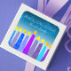 “Peace, love & light.” A playful, modern, artsy illustration of boho pattern candles helps you usher in the holiday of Hanukkah. Assorted blue candles with colorful faux foil patterns overlay a turquoise gradient to white textured background. Feel the warmth and joy of the holiday season whenever you use this stunning, colorful, personalized, custom name Hanukkah sticker. Matching cards, envelopes, wrapping paper, mugs, blankets, serving trays, home décor, and more are also available. Use this for someone special!