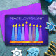 Hanukkah Blue Boho Pattern Candle Peace Love Light Holiday Card