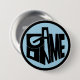 Chanukah Round Button, "Game ON, Black Dreidel on Blue background"