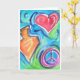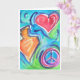 Joyfully painted Hanukkah Card with Image of Heart, Peace Sign and Dreidel.