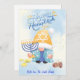 Beautiful hanukkah card design with gnome, menora and other elements of the celebration in blue colors, don't stay without that card which will become perfect detail for your friends and family as proof of affection in front of your family.