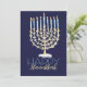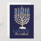 Blue Hanukkah Card with Original Menorah Watercolor Painting Design