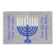 These reversible plastic laminate place mats feature a pattern of dark blue Hanukiahs on a faux silver background on one side and a larger version of of the Menorah with your custom blue text on the other. Can be ordered without wording if you prefer. Please visit my store for matching napkins, table runners, tablecloths and plates for your Happy Hanukkah dinner table.