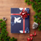 Hanukkah Dove Peace Star of David Patterned Dark Blue Wrapping Paper Roll.