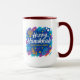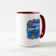 Add festive charm to your drinkware with this bright Hanukkah-themed combo mug. The design features colorful holiday elements and a joyful Festival of Lights message, making it a cheerful addition to your kitchen or a thoughtful seasonal gift. The mug has a crisp white exterior for the artwork, paired with a vibrant glazed rim and handle for a stylish finish.