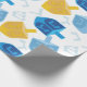 An exciting Hanukkah Dreidel design, give your gifts a touch of uniqueness with this festive paper. Displaying a gold and blue dreidel design with Hebrew letters, choose your gift wrapping paper today!