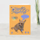 Say Happy Hanukkah with a tan chihuahua playing with dreidels saying Holy Chihuahua, It's Hanukkah! Background is a pretty gold with Stars of David.