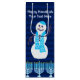 A bottle of wine makes a great Hanukkah party hostess gift. Present yours in this Happy Hanukkah tall wine gift bag. Please visit my store for coordinating gift tags and ribbon. Waving hello in his bright blue scarf with a row of Menorahs on the dark blue striped background, this smiling snowman brings a unique flair to your gift giving this year.