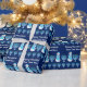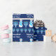 Festive personalized Happy Hanukkah wrapping paper. Blue Menorahs and happy snowmen wearing blue scarfs with a white Star Of David design, their snowy little heads topped with matching Kippahs. Present your Hanukkah gifts in style with this one of a kind blue stripes gift wrap. Check out the matching gift wrap supplies such as gift bags, gift tags, tissue, ribbon and more.