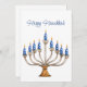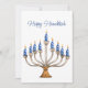 Watercolor menorah with blue and white burning candles. Happy Hanukkah greeting and sentiment on back can be changed. AI assisted graphic purchased with commercial use. Artwork: CosmicMeta