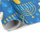 A Beautiful Pattern Wrapping Paper Of Menorah Candles and Sweets For Hanukkah.