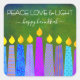 Hanukkah Peace Love Light, Blue Boho Candles Green Square Sticker