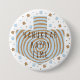 Hanukkah Round Button, Blue/Tan Dreidel Stars Button