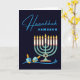 Hanukkah Sameach, Happy Hanukkah greeting card with a blank interior. Digital illustration with a menorah and two dreidels. Art, image, and verse copyright © Shoaff Ballanger Studios, 2022.