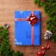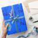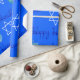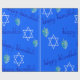 This wrapping paper has a Hanukkah design of dreidel, Star of David, and “Happy Hanukkah” on a blue background. Great for the season.