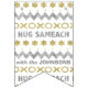 Hanukkah Swallowtail Banner, "Hug Sameach" design, Swallowtail shaped, Bunting Banner. This Hanukkah, Swallowtail Banner is made up of 16 customizable swallowtail shaped flags. Personalize the text, "with the Johnsons" by using your favorite font color, size, style and wording.
