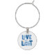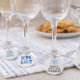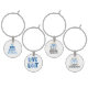 Hanukkah wine glass charms set featuring festive menorah artwork and modern holiday phrases including “Peace Love and Miracles,” “Happy Chanukah,” and playful light-inspired sayings. Each charm adds a meaningful and decorative touch to wine glasses, helping guests easily identify their drinks while celebrating the season. The clean blue and gold palette keeps the look cohesive, modern, and unmistakably festive.