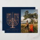 Hanukkiah Menorah Happy Hanukkah Photo Navy Foil Holiday Card