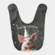 First of all, the shipping was fast. This bib was everything I had hoped for. It has such a smooth feel to it and is machine washable. The colors are vivid and the image quality is just as pictured on the web. Will be happy to give this as a New Baby gift !