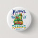 Vibrant, colorful design featuring an open book, colorful dragon, and flowers. The colorful text reads: "Happier when I'm reading". This design is available on a wide variety of products.