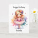 Personalized Birthday card for a little girl. Pretty watercolor little girl ballerina surrounded by pink and purple flowers. Inside is a coloring page. All text on the card can be changed in the personalize area.