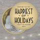 Happiest of Holidays Deco Typography Round Photo Holiday Card