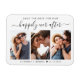 Modern save the date announcement keepsake magnet featuring a collage of 3 photos and "Save The Date For Our Happily Ever After" in a mix of simple typography and trendy script with swashes. Add your first names and wedding date.