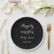These beautiful Happily Ever After Wedding Dinner Paper Plates are perfect for an elegant affair. The plates are edged in white with a black background for the words "Happily ever after." You can customize these plates with the name of the bride and groom and the date of the wedding. Simply elegant and beautiful is the only way to describe these exclusive wedding paper plates. Copyright henishouseofpaper