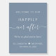 Chic minimal dusty blue wedding welcome foam board sign and photo prop featuring "Welcome To Our Happily Ever After" in a mix of simple white typography and an elegant white script with swashes, your first names joined by a heart and your wedding date.