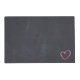 Wedding placemats with a romantic illustration of a bunch of little pink hearts with gold glitter forming a heart-shaped frame. Inside it says "Happily Ever After" in a trendy handwritten style font. Set on a black chalkboard background. Personalize with the bride and groom's names and wedding date.