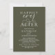 Elegantly announce your happily ever after with our modern olive green theme, modern classy and elegant wedding reception celebration invitation card, "Happily Ever After", hors d'oeuvres, drinks, dessert, and dancing after the wedding ceremony. Tailored for couples continuing their love story, this invitation strikes a perfect balance of sophistication and charm, setting the scene for an unforgettable event. Featuring a modern contemporary script design, it adds a touch of timeless grace to your special day. Designed by the talented TeeshaDerrick, this invitation is a stylish expression of your enduring love.