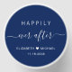 Chic navy blue wedding candle favors for you and your guests featuring "Happily Ever After" in simple white typography and an elegant white script with swashes, your first names joined together by a heart and your wedding date.