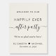 Modern and chic light cream wedding reception welcome sign and photo prop featuring "Welcome To Our Happily Ever After Party" in a mix of simple typography and a trendy script with swashes, your first names joined by a heart and your reception date. Perfect for receptions after an elopement or small private wedding.