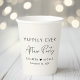 Chic light cream paper cups for your wedding reception and other post wedding celebrations featuring "Happily Ever After Party" in simple modern typography and a stylish script, your names joined together by a heart and your reception date.