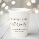 Chic light cream paper cups for your wedding reception and other after wedding parties that feature "Happily Ever After Party" in simple modern typography and a stylish script with swashes, your first names joined by a heart and your reception date.