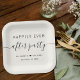 Chic light cream paper plates for your wedding reception and other post-wedding celebrations that feature "Happily Ever After Party" in simple modern typography and a stylish script with swashes, your first names joined by a heart and your reception date.