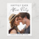 Modern elopement or smaller wedding announcement and reception invitation postcard. The front features your photo and "Happily Ever After Party" in a mix of simple typography and a stylish script. Under your photo, add your first names and wedding date. On the reverse you can personalize your announcement and invitation in more detail and add your names in a signature-like script.