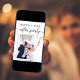 Modern elopement or private wedding announcement and reception invitation. The front features your photo, "Happily Ever After Party" in simple typography and a trendy script with swashes and your names and wedding date. On the reverse side, personalize your announcement and invitation and add your names in a signature-like script.