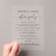 Stylish elopement or small wedding announcement and wedding reception invitation featuring "Happily Ever After Party" written in a mix of simple typography and an elegant script with swashes, your personalized message and invitation and your names in a signature-like script.
