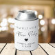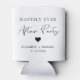 Chic white can cooler favor for your wedding reception or after party celebration featuring "Happily Ever After Party" in a mix of simple typography and a modern script and your first names and reception date. You can change the colors of the text, heart and background by editing in the design tool.