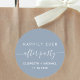 A modern dusty blue sticker for your post wedding reception or party invitations, favors and correspondence with "Happily Ever After Party" in a mix of simple white typography and a stylish white script with swashes, your first names and the date.