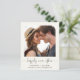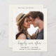 Simple and chic light cream budget-friendly elopement or private wedding announcement and post-wedding reception invitation featuring your photograph, "happily ever after" written in a stylish script with swashes and your first names, wedding date and location in modern typography. On the reverse, personalize your announcement and invitation in more detail, input your wedding website address to create a QR code for your guests to scan for more information and to RSVP online, and add your names in a signature-like script.