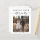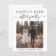 Budget-friendly modern elopement or smaller wedding announcement and reception invitation. The front features your wedding day photo and "Happily Ever After Party" in a mix of simple typography and trendy script with swashes. Under your photo you can add your first names and wedding date. On the reverse you can personalize your message in more detail and add party or reception details and your names in a signature-like script. This budget semi-gloss paper is similar in weight to photo paper. A traditional thick card stock version is also available (message us for the link).