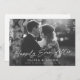This modern yet elegant wedding elopement announcement features a script greeting that says "Happily Ever After", classic typography, and a "full-bleed" horizontal photo. All colors in this design are customizable, even the script. You can further customize this design by adding another photo and/or additional text to the back side.