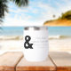 This stemless wine tumbler features a large ampersand text that reads, “They lived happily ever after”. The design makes this a great gift for a wedding or anniversary.