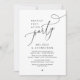 Mark the beginning of your forever with elegance using our contemporary black and white theme wedding elopement celebration invitation card, "Happily Ever After party". Perfect for couples extending their joyous occasion, this invitation exudes sophistication with a hint of playfulness, setting the stage for a memorable event. Adorned with a timeless modern script design theme, it adds a touch of refined charm to your festivities. Crafted by TeeshaDerrick, this invitation promises to beautifully capture your love story.