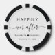Chic poker chips for your wedding reception, engagement parties, rehearsal dinner, couples showers, other wedding celebrations and your newlywed life that feature "Happily Ever After" in simple modern typography and a stylish script with swashes, your first names joined by a heart and your wedding date.