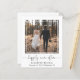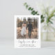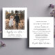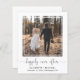Simple and chic budget-friendly elopement or smaller wedding announcement and post-wedding reception or party invitation. The front features your photograph in a cut out square frame, "happily ever after" written in a trendy script with swashes and your first names and wedding date and location in modern typography. On the reverse side, you can personalize your wedding announcement in more detail, add a reception or party invitation and sign your married names in a signature-like script. This budget semi-gloss paper is similar in weight to photo paper. A larger 5x7 traditional card stock version is also available (message us for the link).